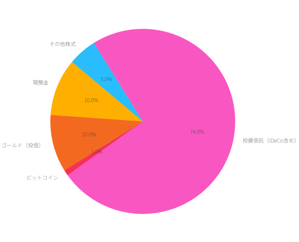 投資対象のメインはオルカンでゴールドにも投資しているため、積極投資している割にはかなりディフェンシブな内容かもしれません。