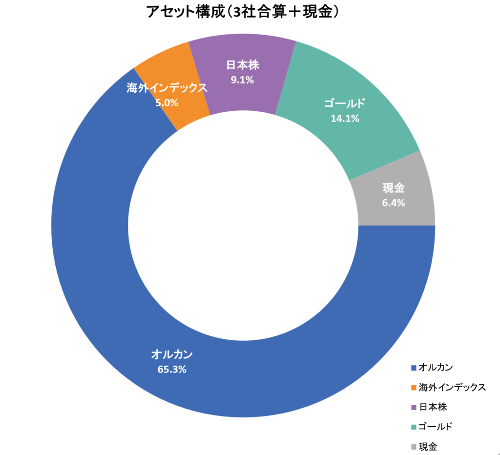 私はオルカン+海外インデックス65%・日本株10%・ゴールド15%・現金10%を現在の目標としております。