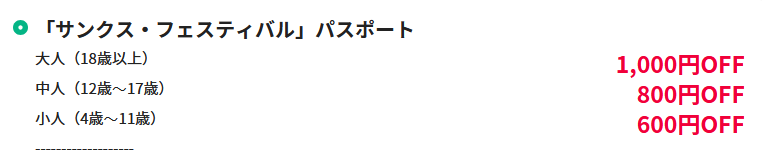 気になるパスポート価格は大人1000円引き、中学生・高校生が800円引き、そして小学生以下が600円引きにディスカウントとなります。